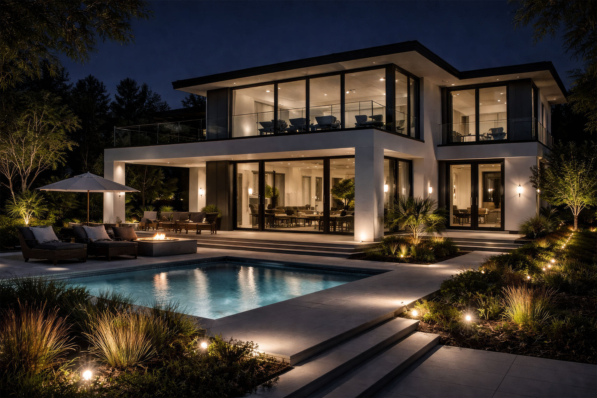 Lighting, audio, and smart outdoor systems — seamlessly integrated into one cohesive design.